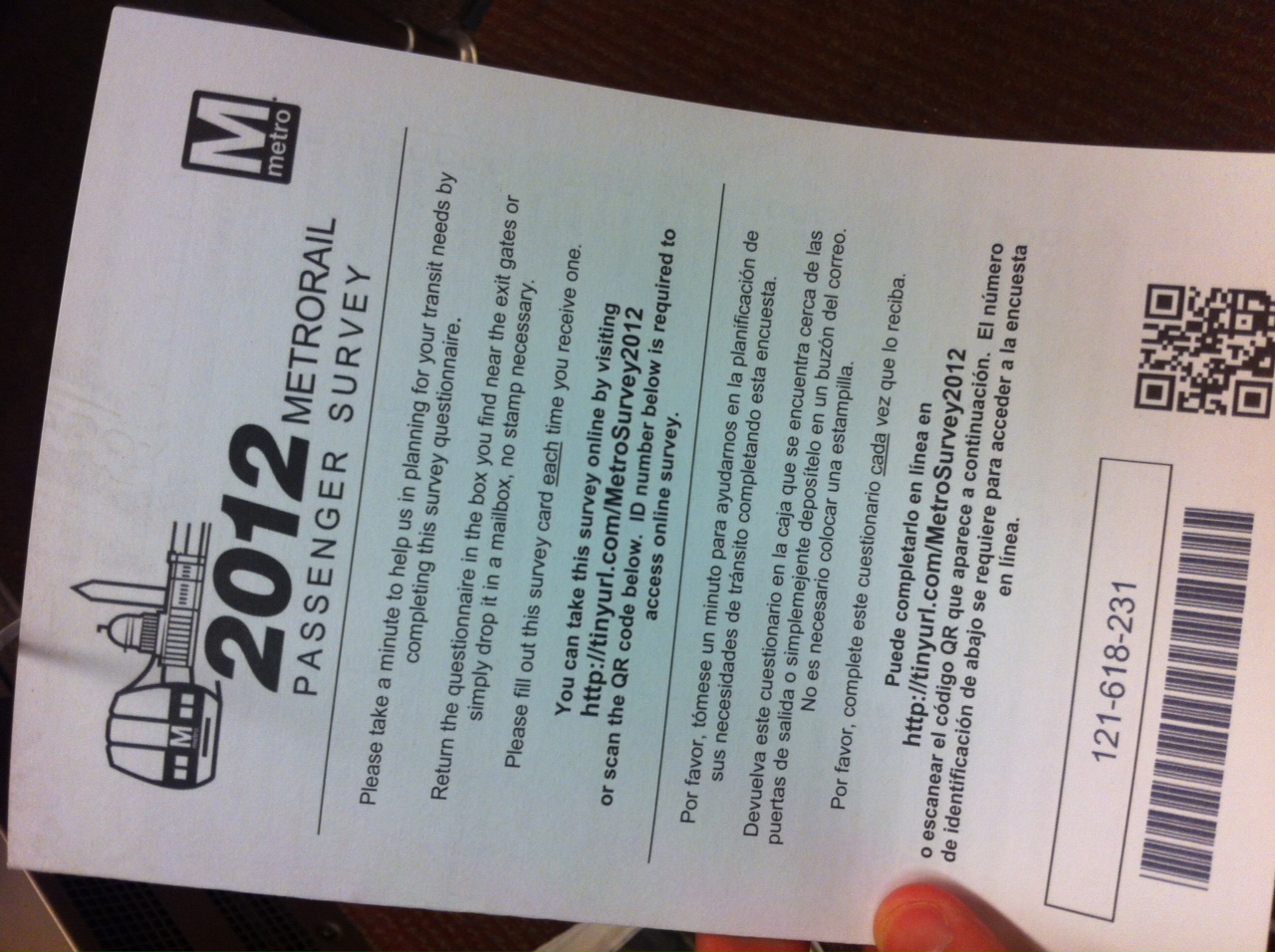 As you may have heard, the 2012 Metrorail survey is underway. There has been quite a bit of discussion online about the survey, so we thought the survey team would use this opportunity to better explain the purposes of the survey