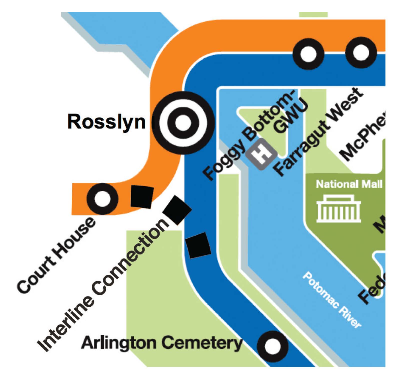 - Alternative 2: A second Rosslyn Station for a new Blue Line with an underground passageway to the existing Rosslyn station, which would connect to the Orange/Silver Lines with a pedestrian tunnel.