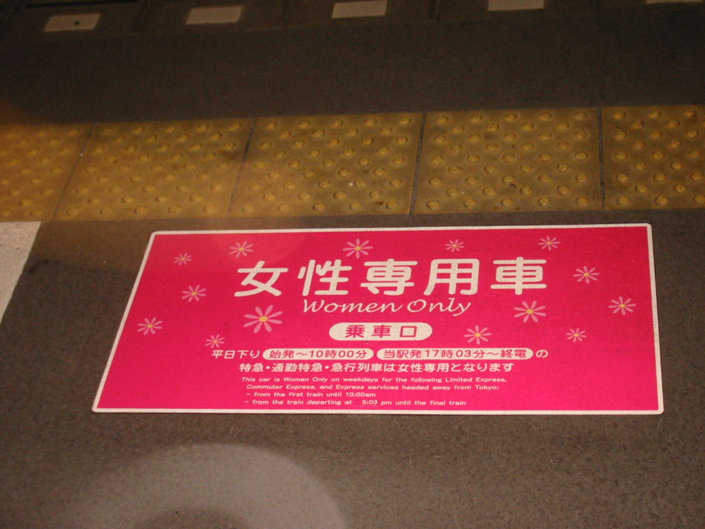 Additional platform signage on the ground tells riders where the doors will open on the platform, which stair/escalator to use to get to a specific building or destination, and where women-only cars will be.