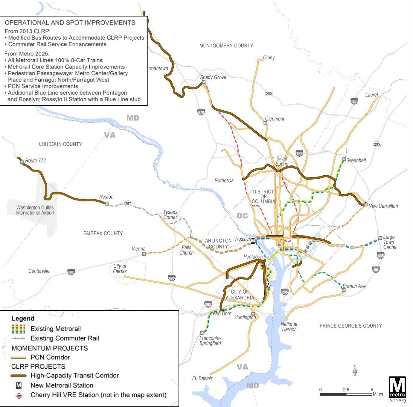 - Do use the same baseline transportation network for 2040. This enabled us to see what the impacts were of land use and/or policy changes. The assumed 2040 network included what was on the ground in 2014 + all projects in the 2013 Financially Constrained Long Range Plan (CLRP) + Metro 2025, as shown in the image below.