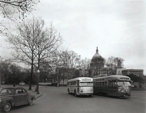 What’s old is new again! Capital Transit vehicles sharing the road in 1947.