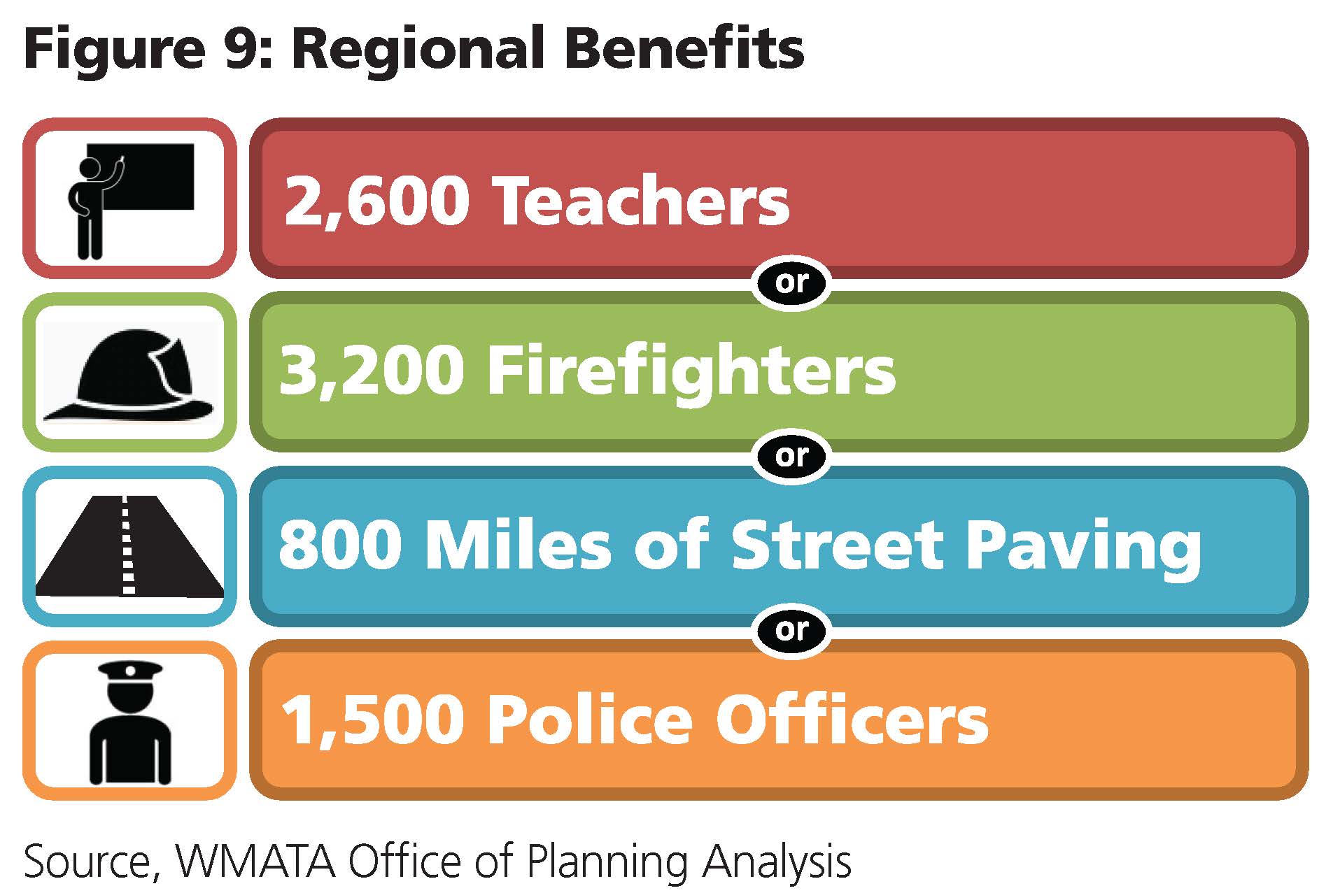 At the time this report came out, the region was about to make a substantial investment in public transit , probably not unlike today, where we face real choices about whether to invest in Metro 2025 initiatives such as 8-car trains, the Purple Line, or bus lanes. To quote the report,
